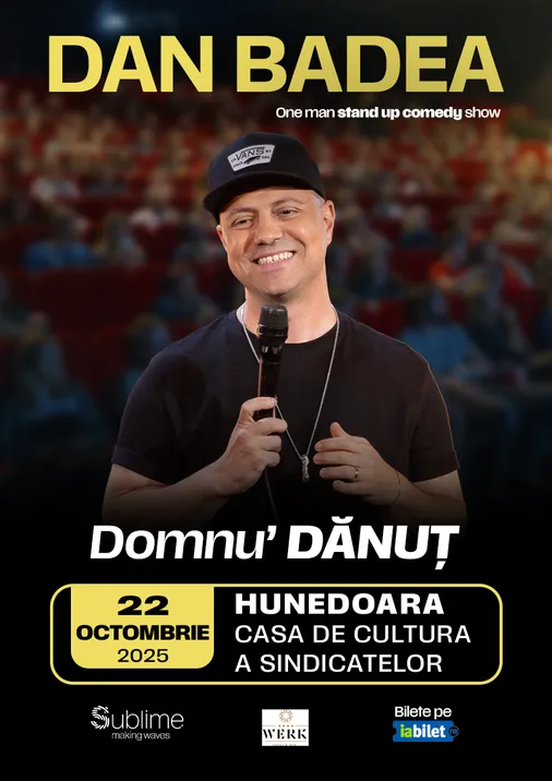 Dan Badea vine la Hunedoara cu premiera noului său turneu Domnu' Dănuț cu glume noi și o (psiho?)analiză amuzant de lucidă a situației de a te simți copil la aproape 47 de ani. Ca bărbat. Un one man show de aproximativ 70 de minute în care râsul este practic garantat.