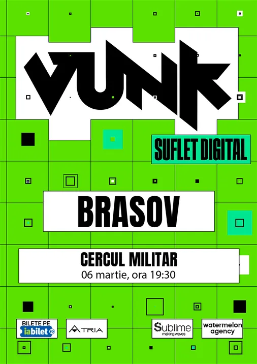 De peste 30 de ani pe scena muzicală din România, VUNK este trupa inovației în rock-ul românesc. De-a lungul carierei, formația a semnat numeroase premiere: primul videoclip 3D, primul concert multimedia, un afiș realizat exclusiv din GIF-uri și primul videoclip filmat live pe Facebook. Single-uri precum „Pleacă” (Hit Gold), „Vino, du-te” (feat. Lidia Buble), „Vreau o țară ca afară” (hit popular devenit slogan național), „Așa și” sau „Numai la doi” au dominat topurile radio timp de săptămâni, consolidând statutul trupei ca reper al muzicii românești. În 2018, VUNK a devenit protagonista primului documentar al unui artist român, „Jur să spun adevărul”, iar prin tehnologie, show-uri spectaculoase și cântece cu mesaj profund, trupa continuă să își îndeplinească viziunea de a conecta oamenii, de a le aduce bucurie, încredere și speranță.